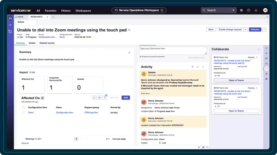 Service Operations WorkspaceServiceNow