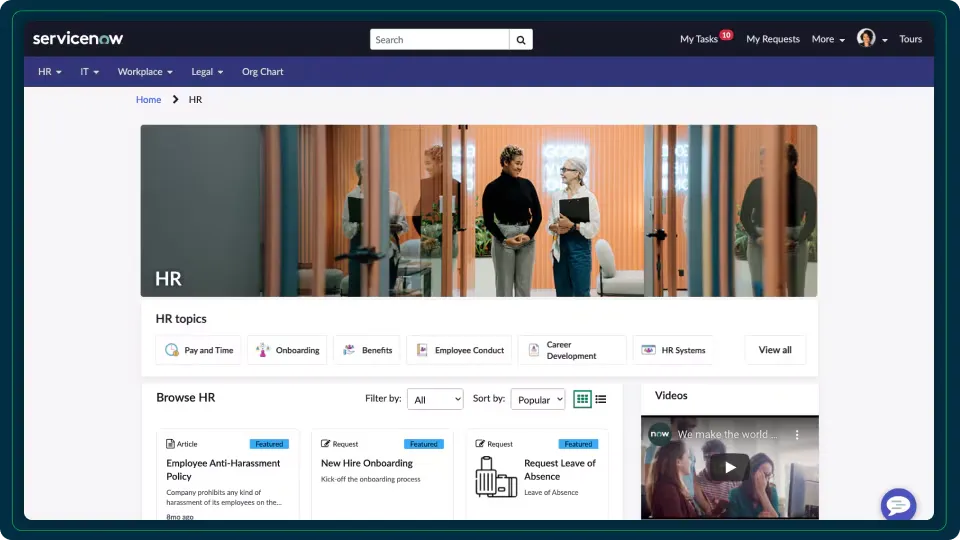 Service Portal provides a configurable platform for building digital service hubs that centralize access to workflows, knowledge bases, and applications through role-specific interfaces.