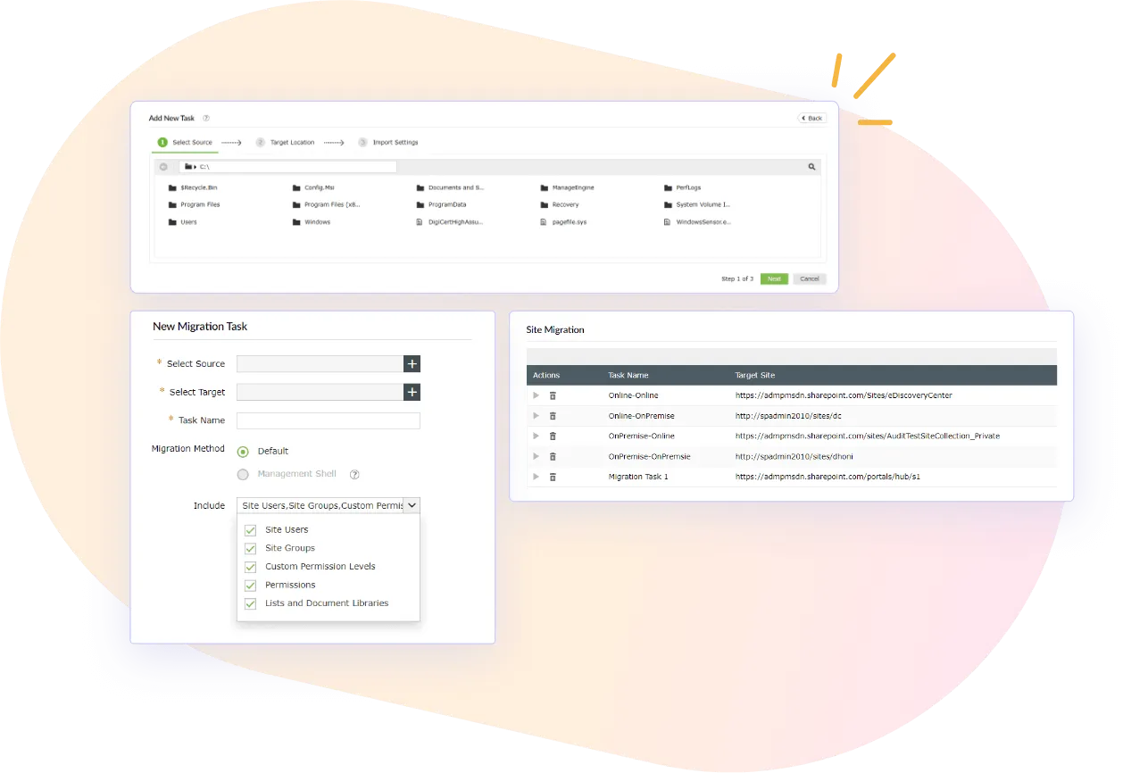 Seamless Migration Migrates SharePoint resources between on-premises and cloud environments.