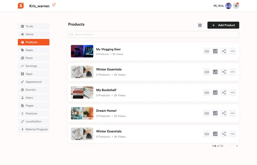 Effortlessly handle and arrange your shopping recommendations with ease, whether you're a blogger or creator. Receive instant alerts in case of any broken links, enabling swift issue resolution and preventing missed sales.