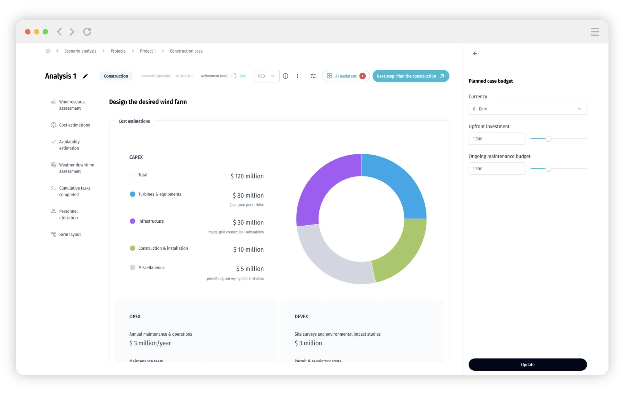 AI-driven SaaS platform for planning, simulating, and optimizing every stage of onshore & offshore wind farm lifecycle.