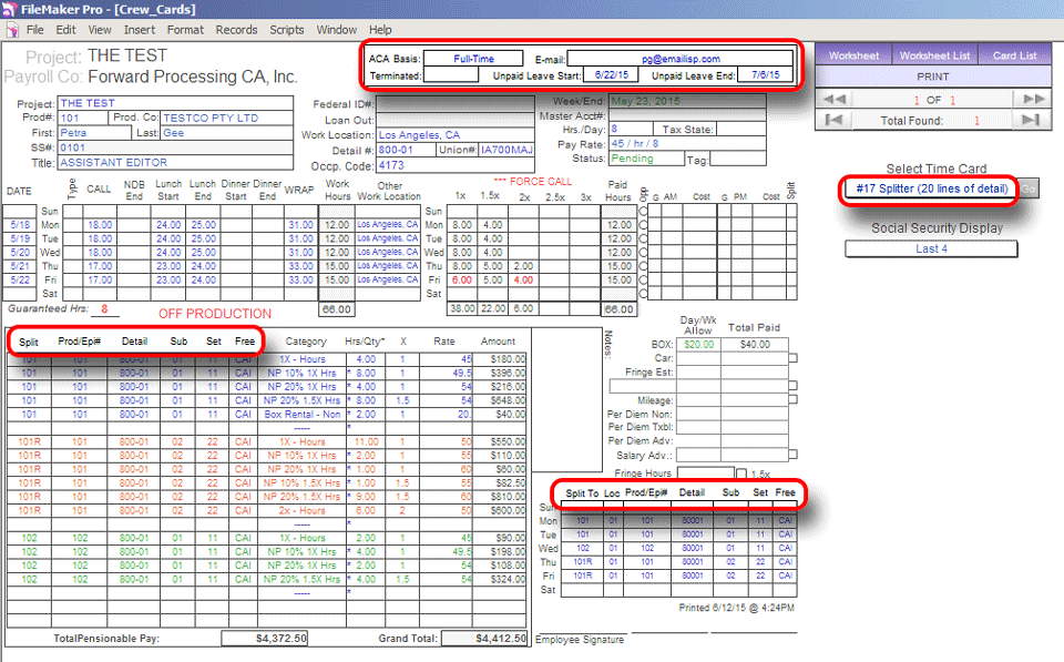 - Split Days Just one-click to split the straight, overtime, and gold hours to three different jobs/episodes. This can be done by time of day or percent! Up to three splits in one day.