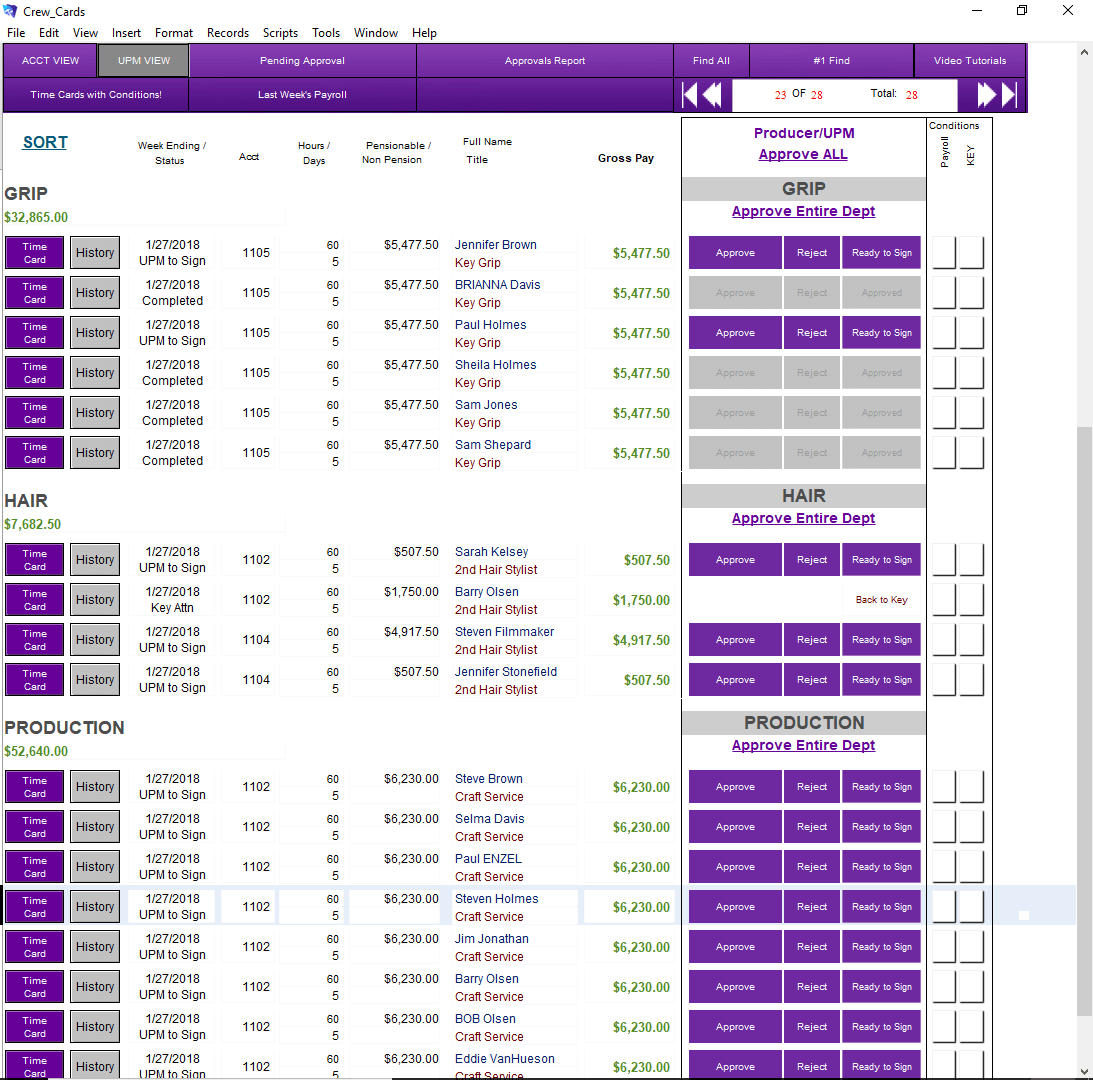 - Digital approval signatures, with a workflow from Payroll Accountant to Lead to Producer/UPM (for networked users only)