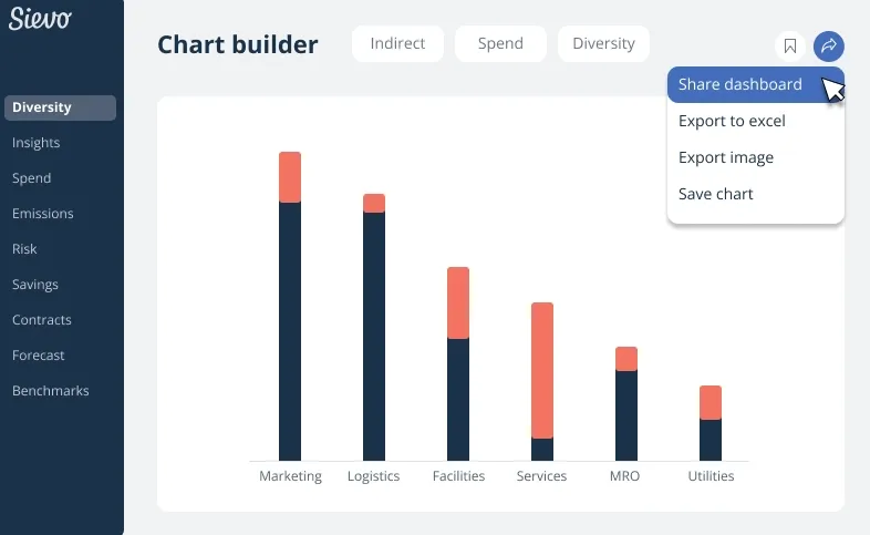 - Custom Dashboards & Reporting Create personalized dashboards and reports using quick filters and Sievo’s self-service tools. Share insights via bookmarks, exports, or direct stakeholder access.