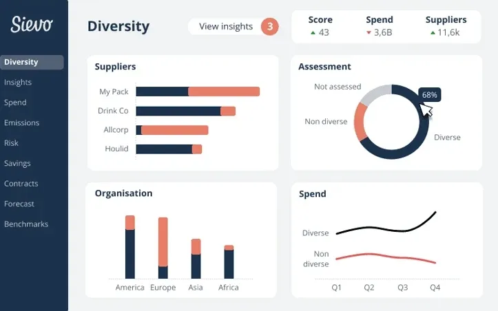 - Diversity Type Insights Access supplier certifications and diversity types. Visualize the magnitude and trends of each diversity type in your spend.