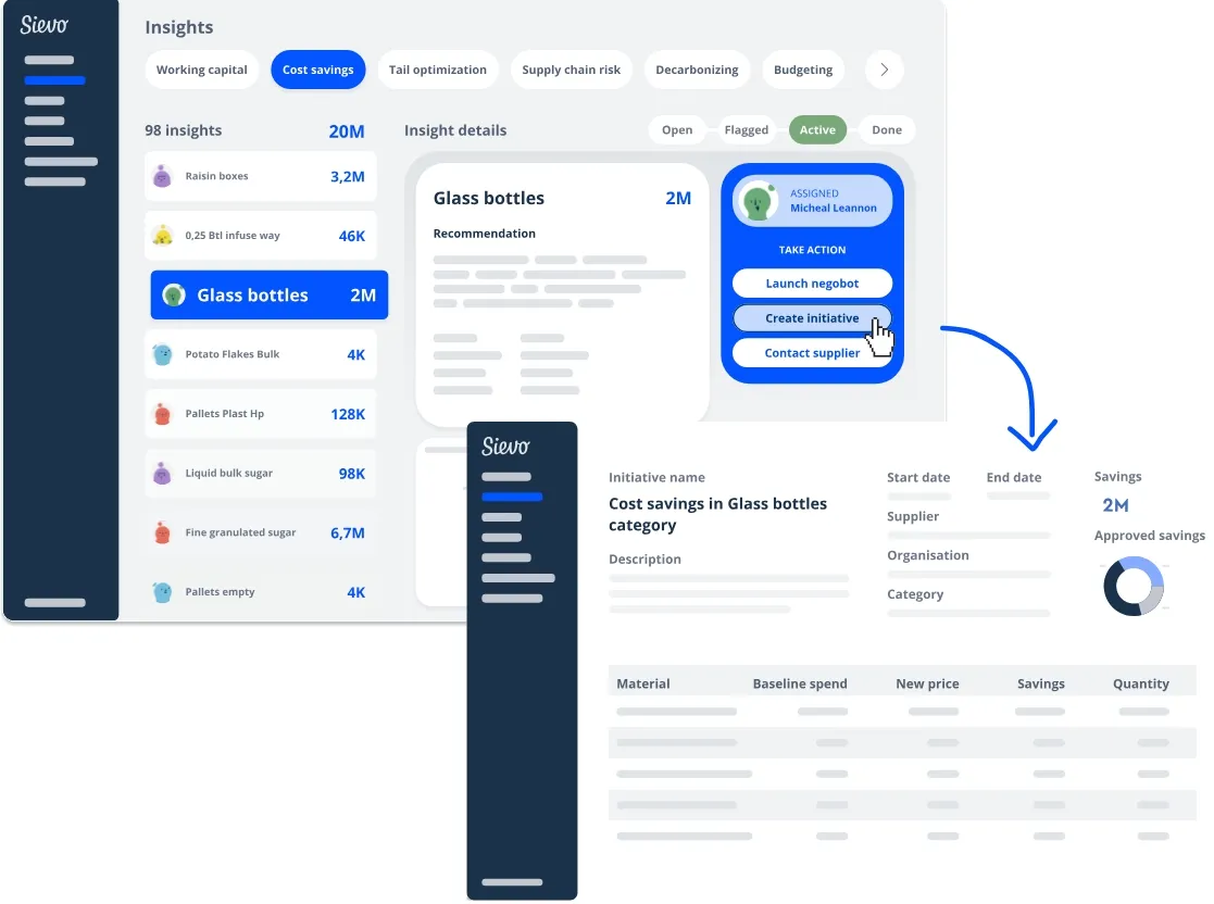 - Spend Data Integration: Link spend analytics directly to savings initiatives with one click.