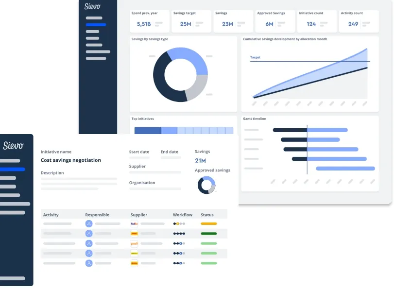 Sievo Initiative Management is a procurement performance solution that enables organizations to manage the entire lifecycle of savings initiatives—from identification to execution and reporting. It provides complete visibility and control over the savings pipeline, helping procurement teams streamline collaboration, accelerate savings delivery, and align with financial goals. The platform replaces spreadsheets and non-specialized tools with a centralized, AI-powered system that connects spend data to actionable initiatives. It empowers procurement professionals to act on opportunities, track progress, and deliver measurable bottom-line impact.