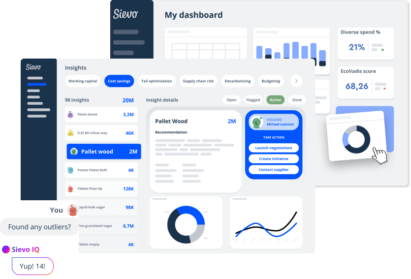- Sievo IQ: AI-driven decision support for procurement strategy, supplier performance, and cost-saving identification.