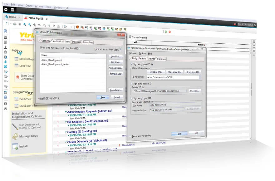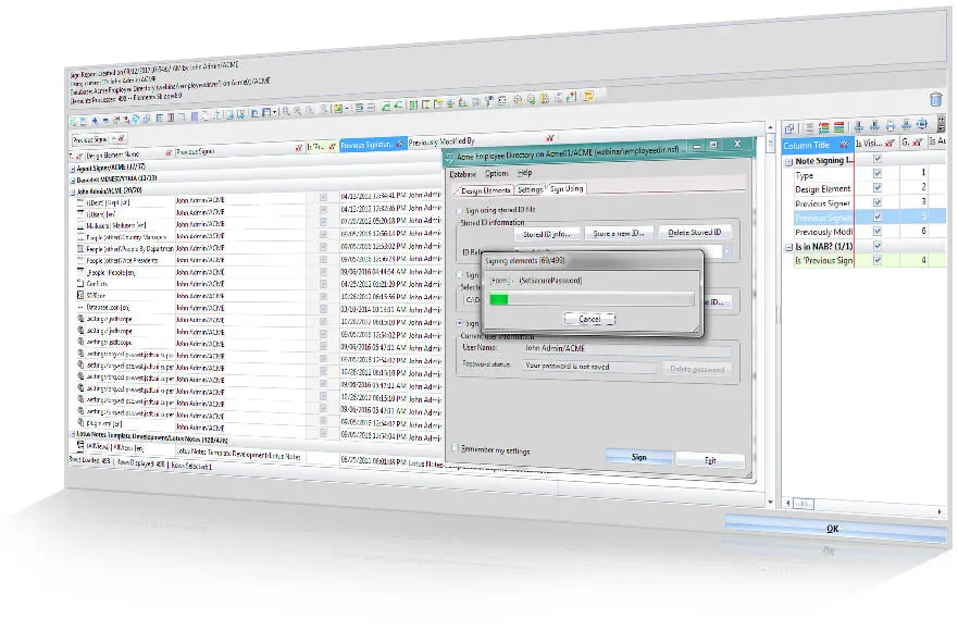 - Secure and Efficient Signing: Sign any combination of design elements with any ID you have access to, without interrupting your Notes session.