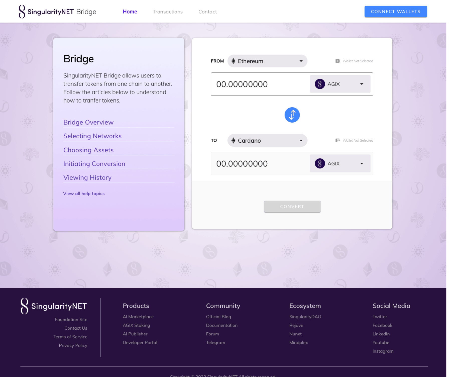 SingularityNET Bridge allows users to transfer tokens from one chain to another.