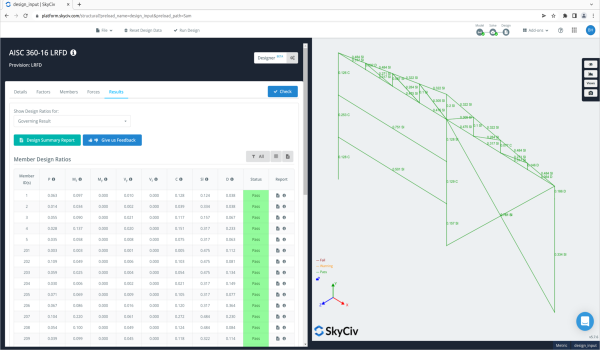 Finalize the design of your structure in minutes! SkyCiv supports multiple materials, including common timber, cold-formed, and hot-rolled steel member design. With this one-click functionality, you can test all the members in your structure within seconds.