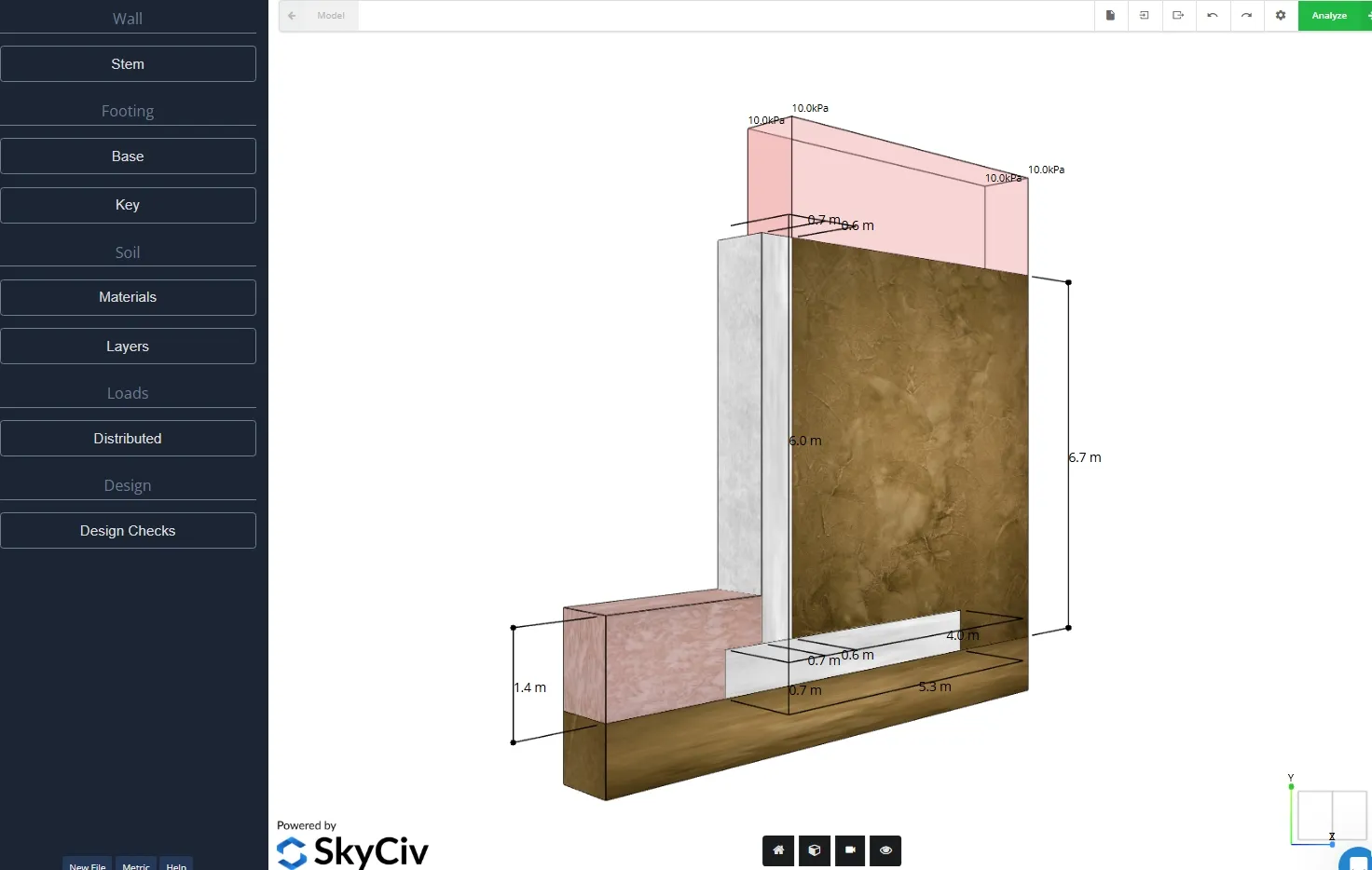 SkyCiv Retaining Wall Calculator is a free, cloud-based tool designed to help engineers perform preliminary design and stability checks for cantilever and gravity retaining walls. It supports concrete and block wall systems and calculates critical components such as wall stem, footing, and soil layers. The calculator performs essential stability checks including overturning, sliding, and bearing capacity, and provides utilization ratios for each. Users can define wall geometry, assign soil and material properties, apply various load types, and analyze the structure’s performance. The full version of SkyCiv Retaining Wall Design Software unlocks advanced features such as custom wall shapes, detailed design reports, and complex analysis capabilities.