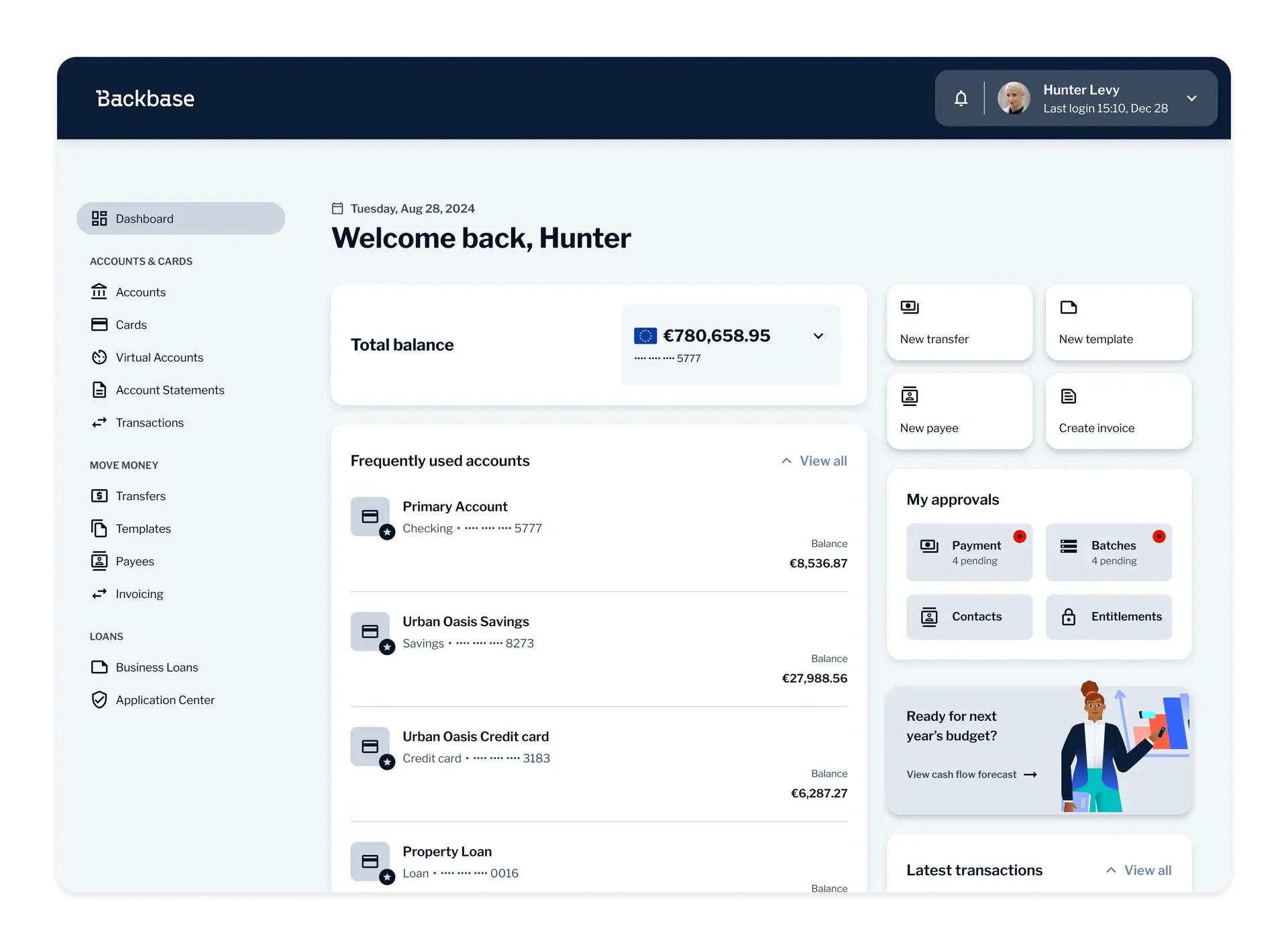- From everyday tasks like payments and transfers to advanced tools like invoicing, cash flow forecasting, treasury management, and business investing—launch new digital value propositions fast without building everything from the ground up.
