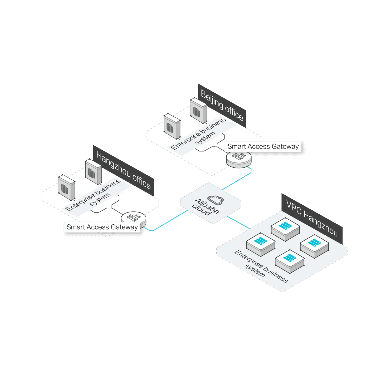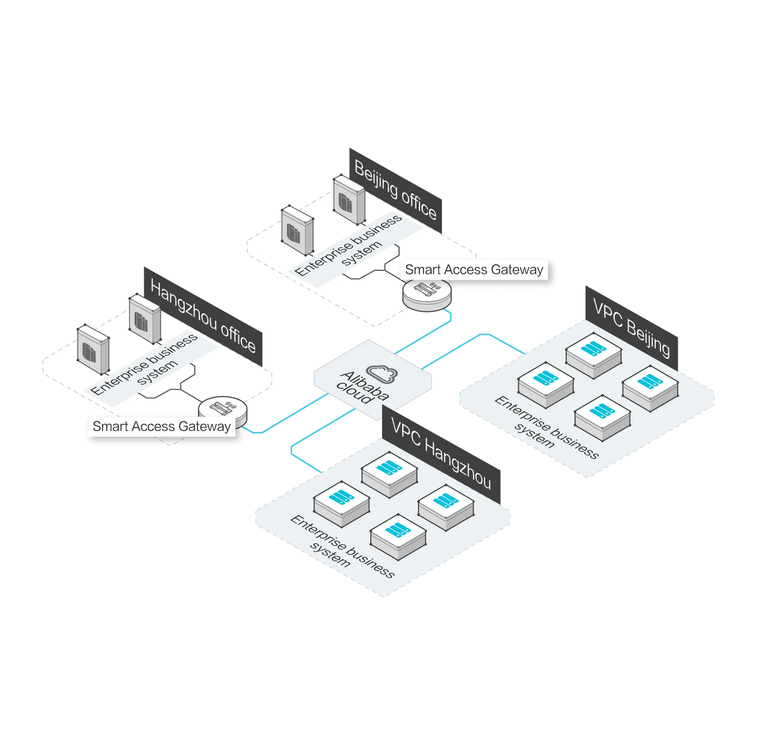 Smart Access Gateway (SmartAG) provides an end-to-end cloud deployment solution. This allows enterprises to connect to the nearest VPC through encrypted connections, and enables intelligent, reliable, and secure business system deployment on the cloud.