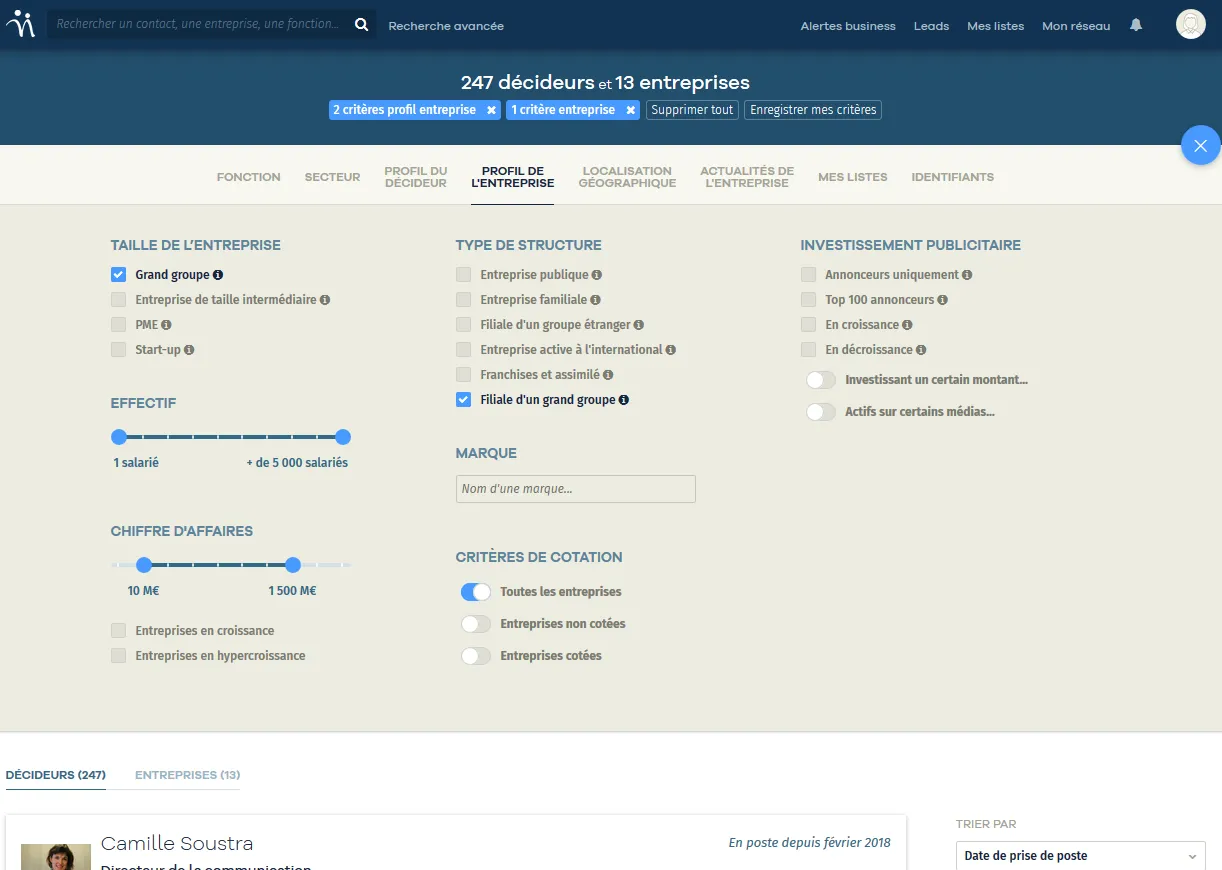 - Targeted Campaign Builder: Create campaigns using filters like industry, role, company size, and recent activity.