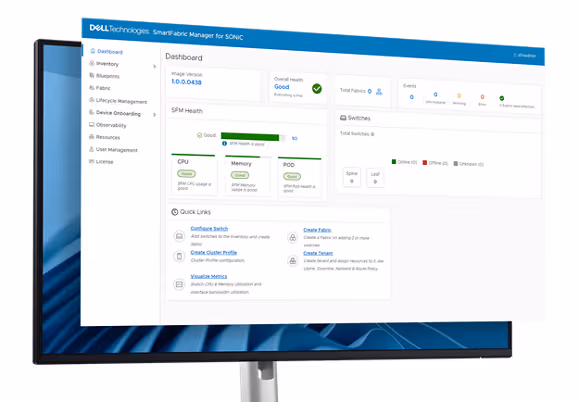 Dell SmartFabric Manager for SONiC simplifies network management with automation, analytics, and scalability. It enhances control and visibility in SONiC-based infrastructures, streamlining deployment and operations with minimal user interaction.