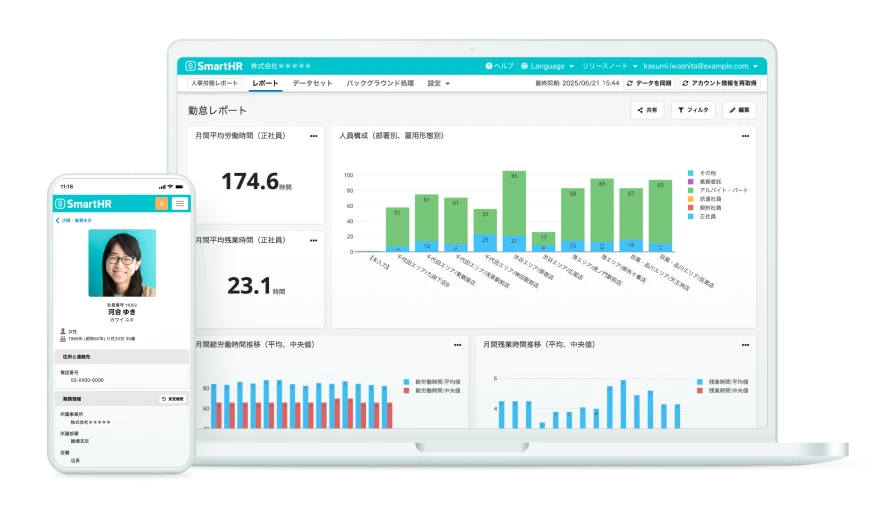 While streamlining human resources and labor operations, we centrally manage employee data that has naturally accumulated. Leverage up-to-date and accurate data to implement strategic HR initiatives to improve organizational performance.