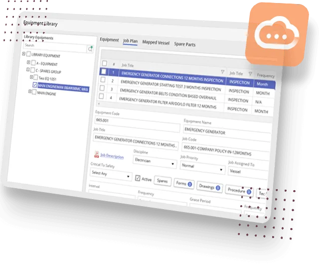 Centralized platform for efficient ship data management, organizing equipment, jobs, and spare parts in one place, enhancing data integrity.