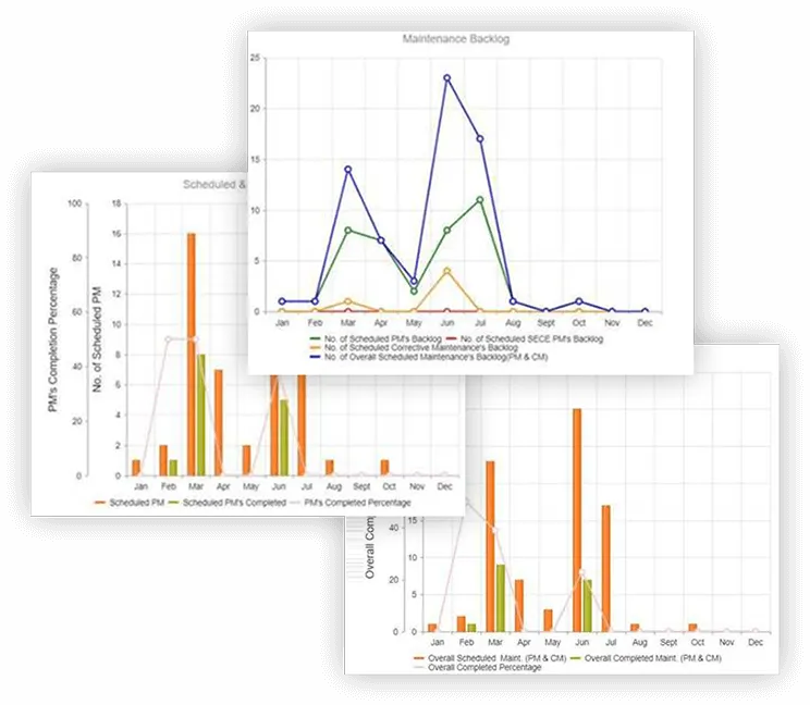 - Comprehensive BI Reports: Generate detailed Business Intelligence reports for insights into key metrics, maintenance performance, and costs