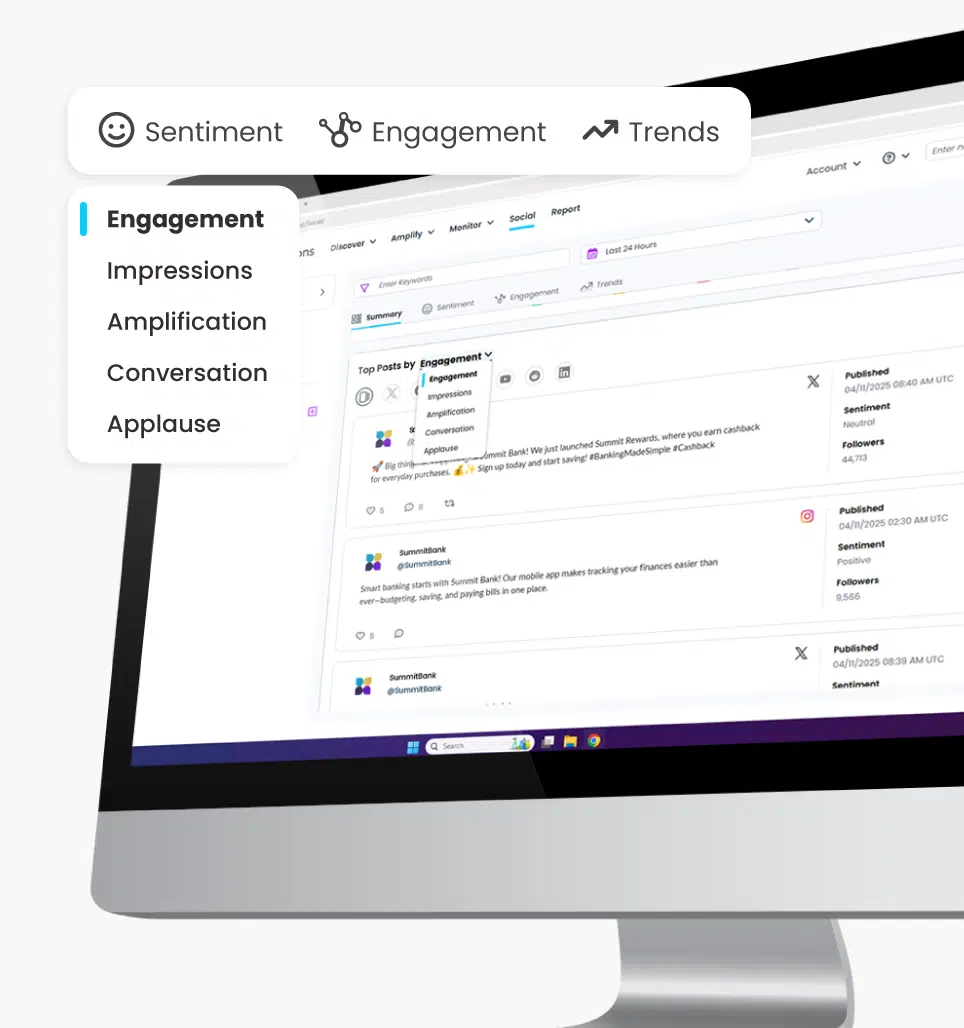 Social Listening Follow what people have to say in real time, monitor trends, and analyze engagement to shape your brand narrative across all social media platforms