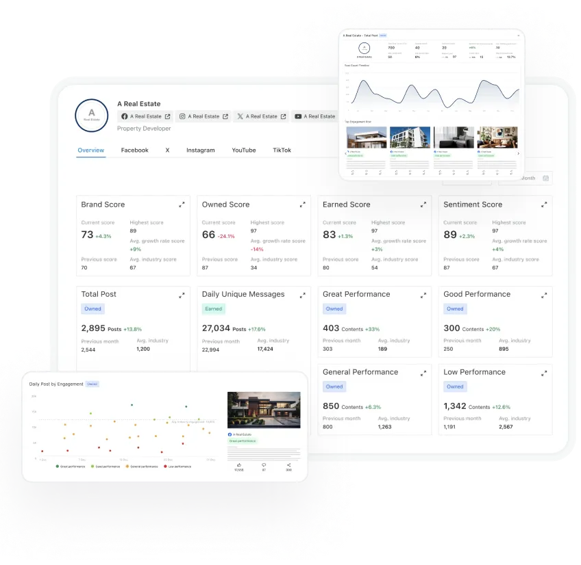 - Measures the effectiveness of brand communication on social media, comparing a brand's performance with competitors through a Brand Score calculated from Owned Media and Earned Media data.