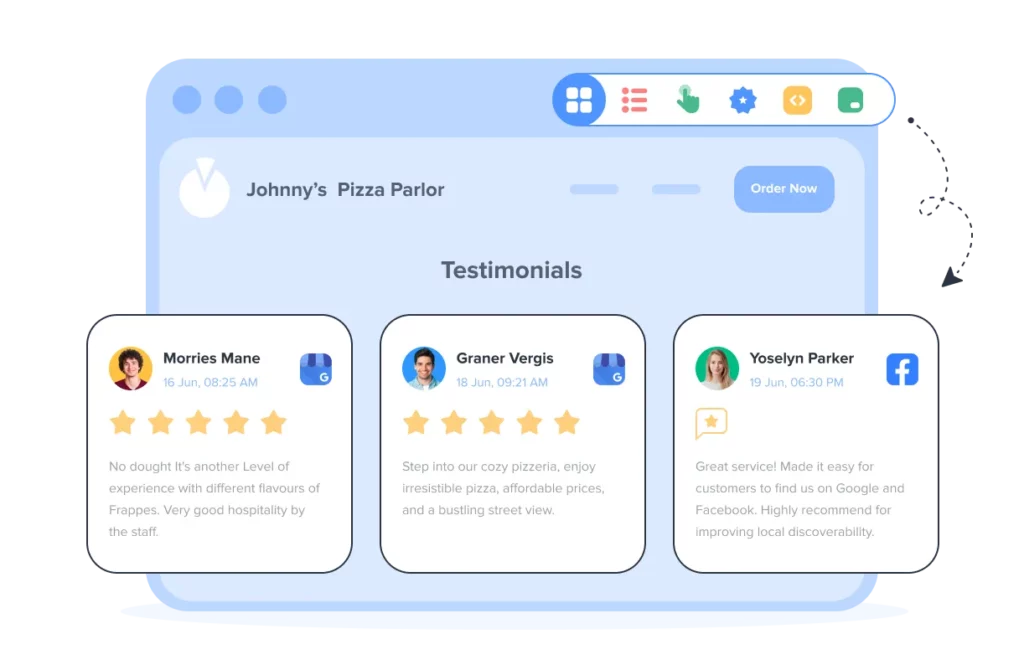 - Review Marketing on Website and Social Media: Showcase reviews across websites and social channels to increase credibility and traffic.