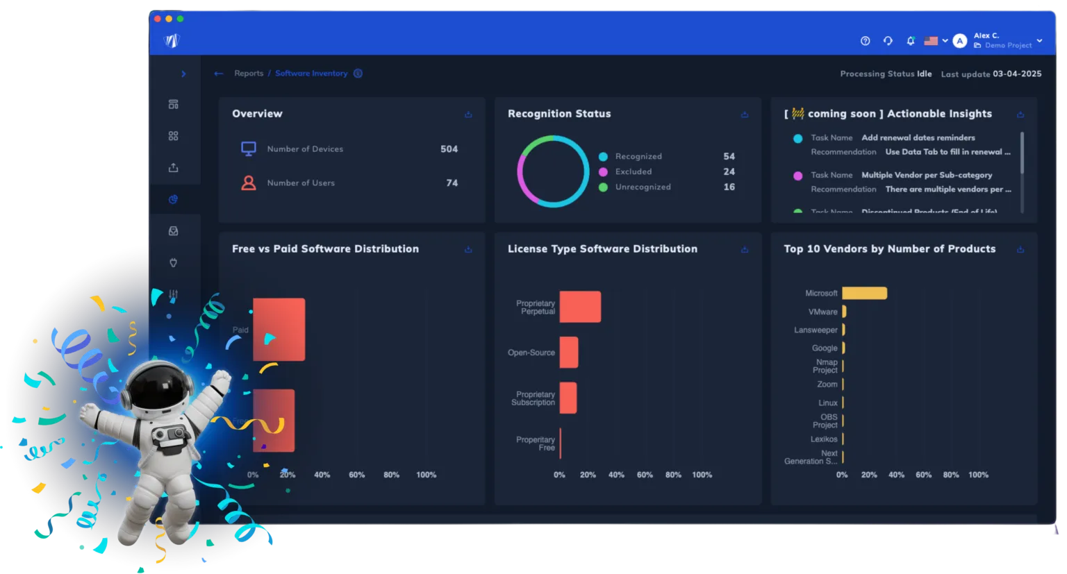 - Automatically scans and categorizes software inventory using intelligent recognition and enrichment algorithms.
