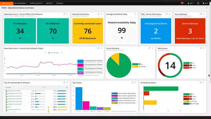 - Integrated Monitoring: Combines network performance monitoring, log analysis, server and application management, and more into a single platform.