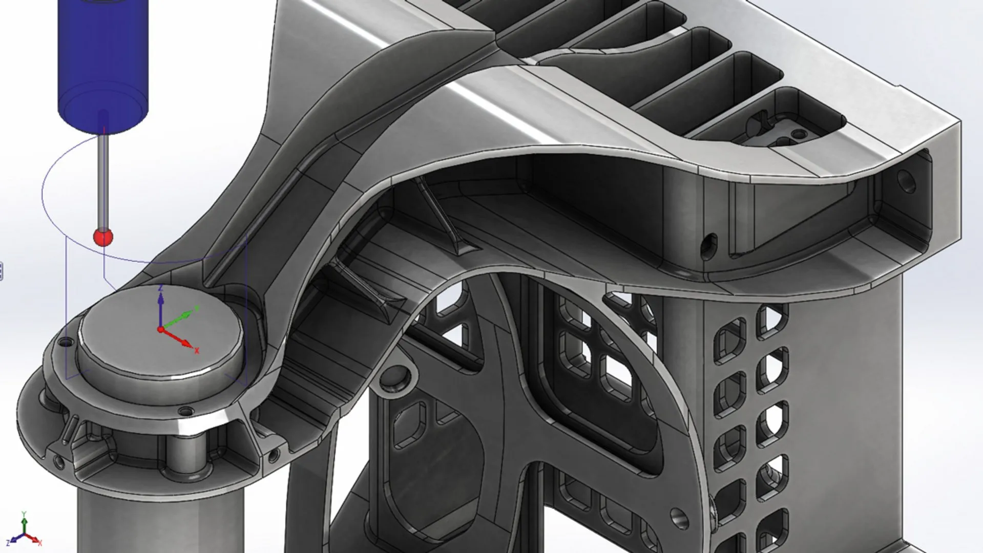 Solid Probe cycles are used for measuring machined surfaces right on the machine, without transferring the part to a CMM machine first – the part can be inspected on the CNC machine itself.