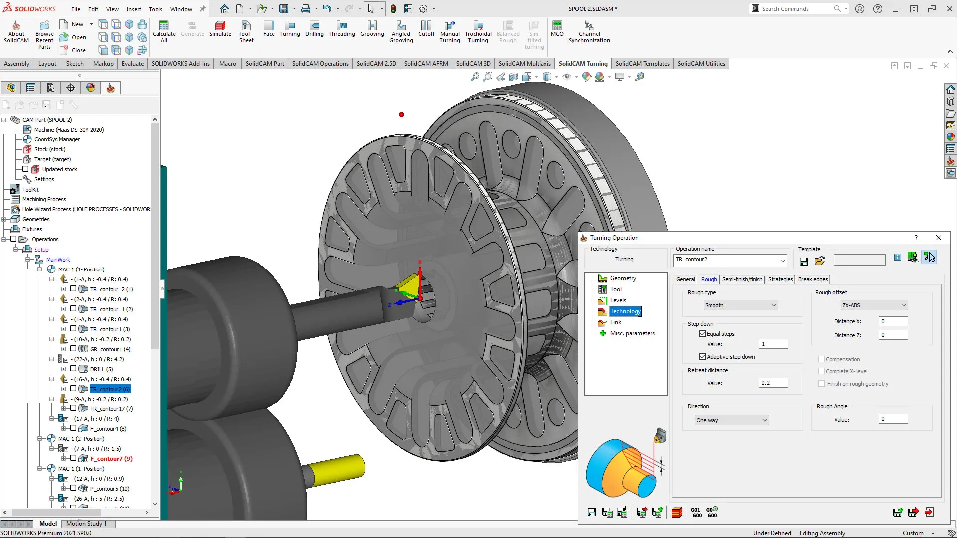 SolidCAM provides a comprehensive turning package with powerful toolpaths and techniques for fast and efficient turning with fixture and holder protection. SolidCAM's Turning module produces advanced rough and finish profile turning, together with support for facing, grooving, threading and drilling cycles.