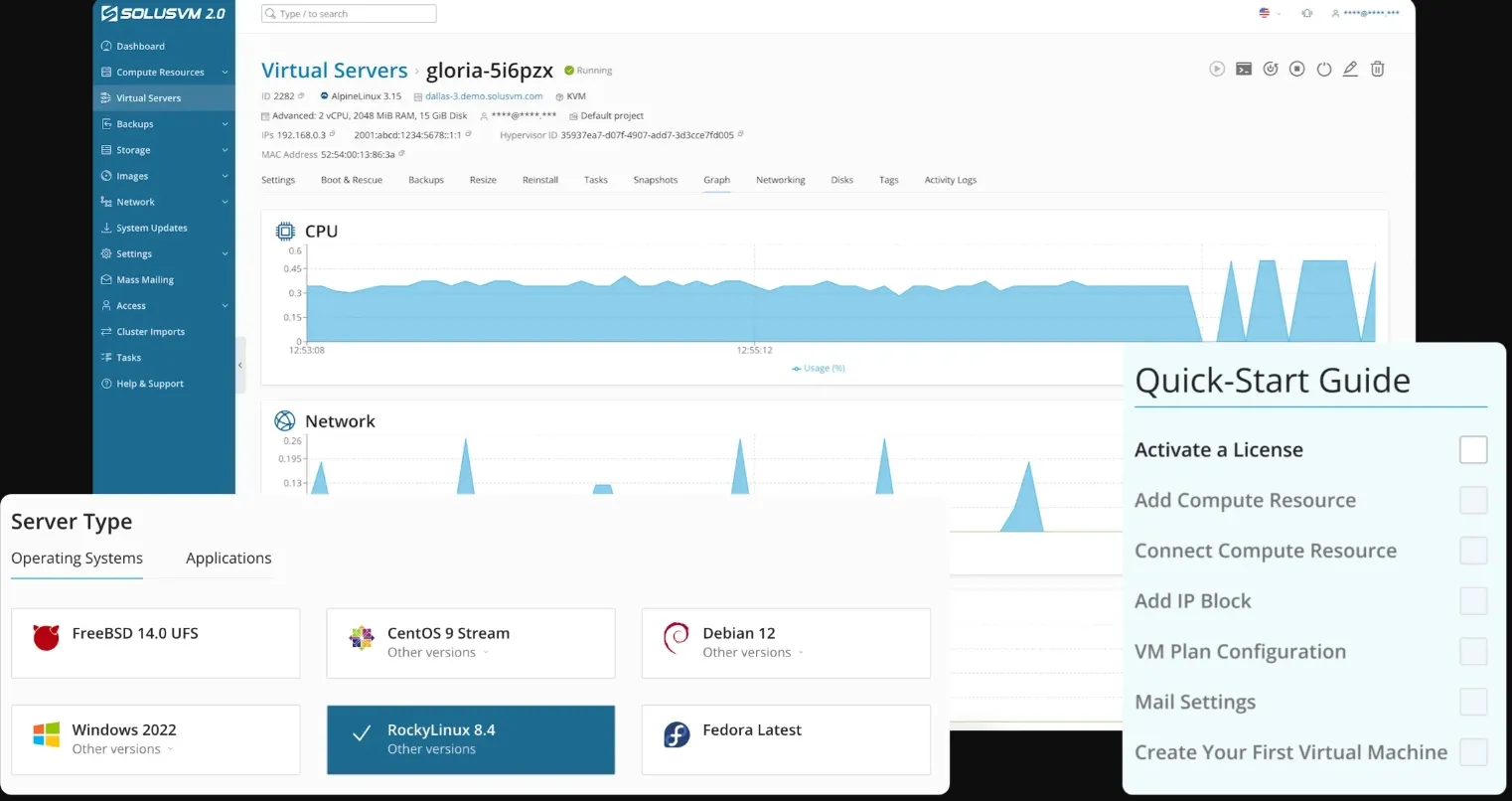 - Multi-Hypervisor Support: Compatible with KVM and OpenVZ virtualization technologies.