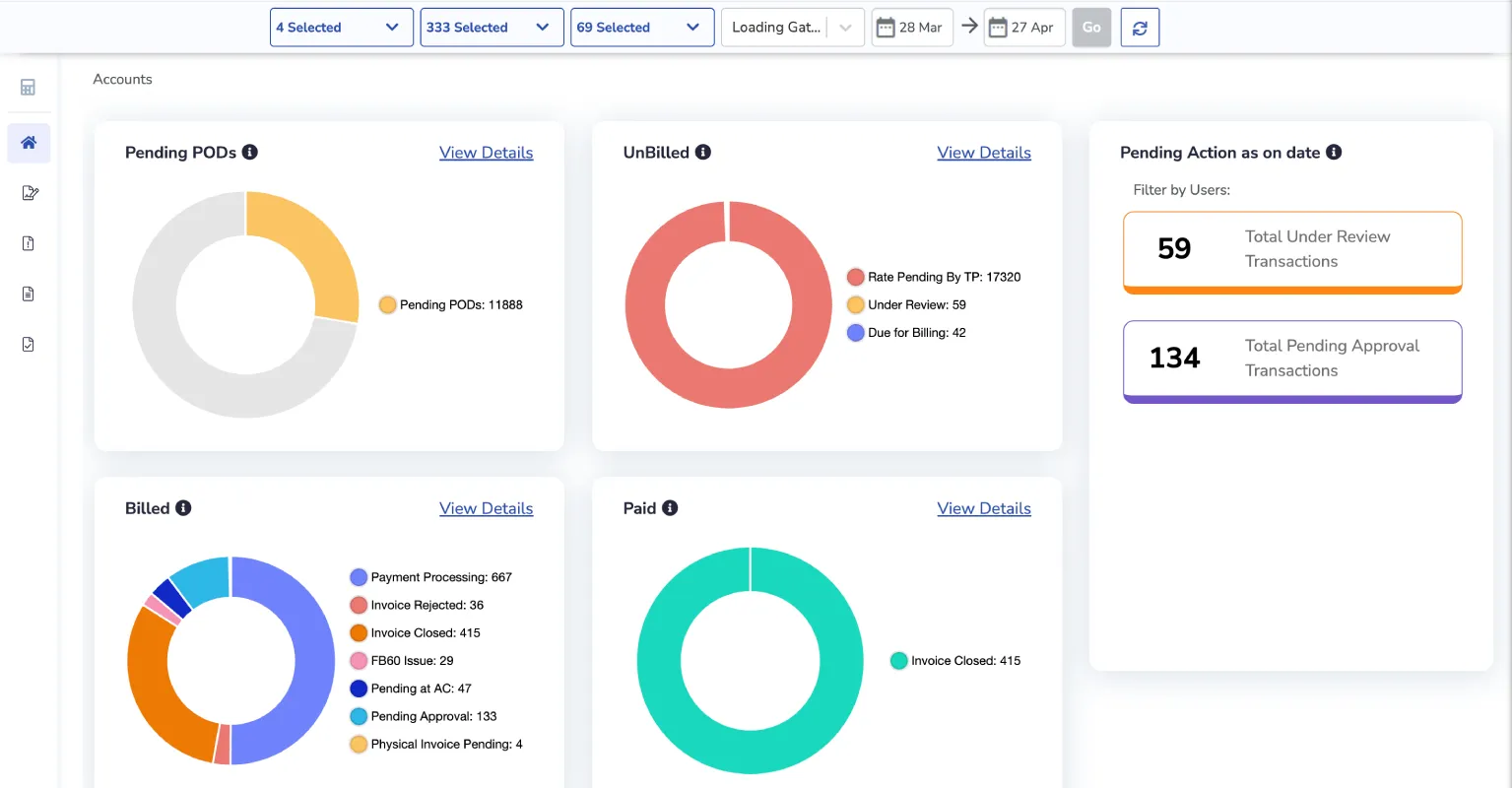 With SP Freight Accounting software, you can digitally generate, reconcile, and auto-approve freight invoices. As soon as the invoices are approved, and payments are made to the transporters, the ERP system updates automatically. It also sends notification alerts from a single platform, ensuring effortless communication among stakeholders.