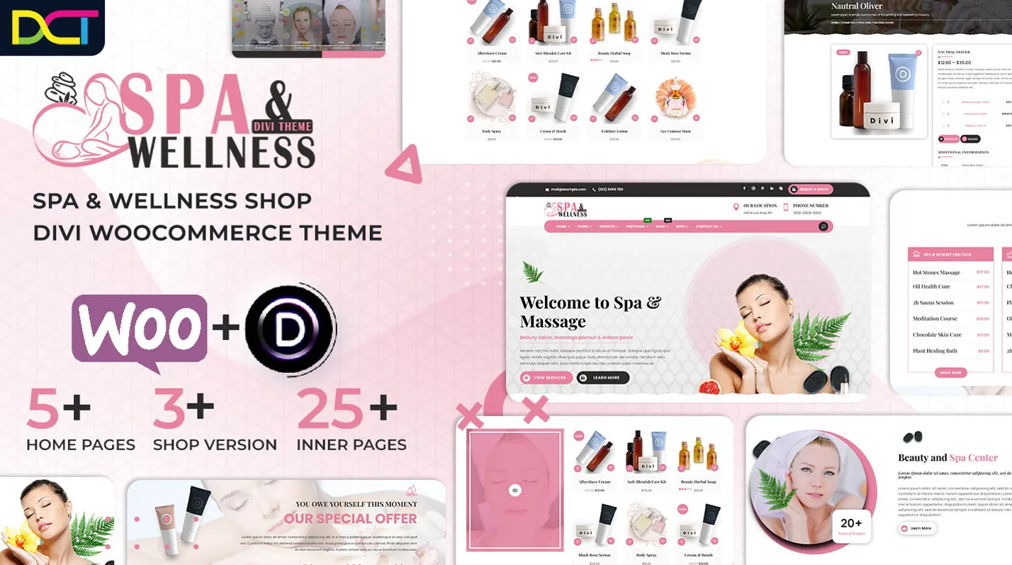 Elegant Divi child theme for spas and wellness centers with WooCommerce support, booking features, and soothing design.