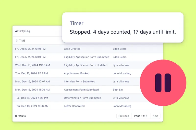 - Case Timers: Set and track time limits to manage application-to-decision turnaround time, ensuring regulatory compliance.