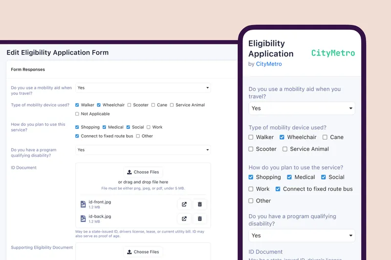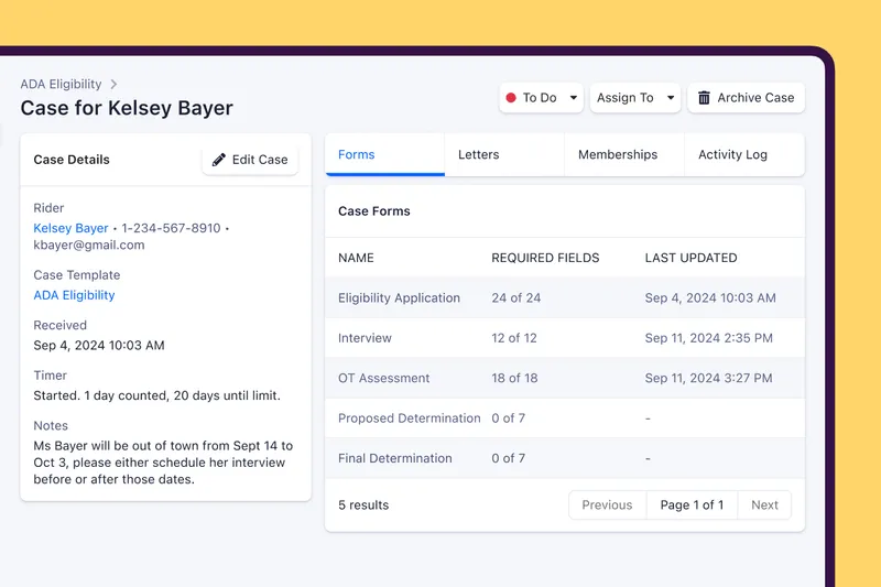Centralize and automate the entire paratransit rider eligibility process in one platform – driving clarity and efficiency for your team, customers and medical professionals alike.