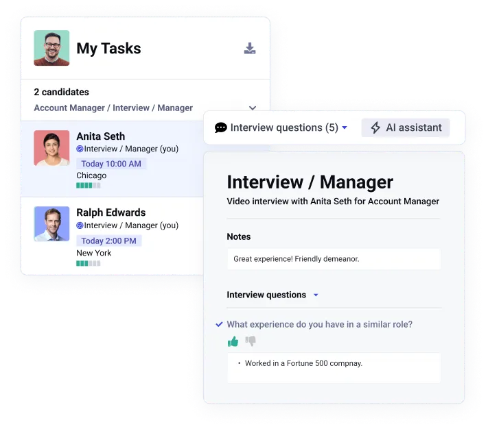 Streamline collaborative hiring with video interviews, AI‑powered automation, and analytics