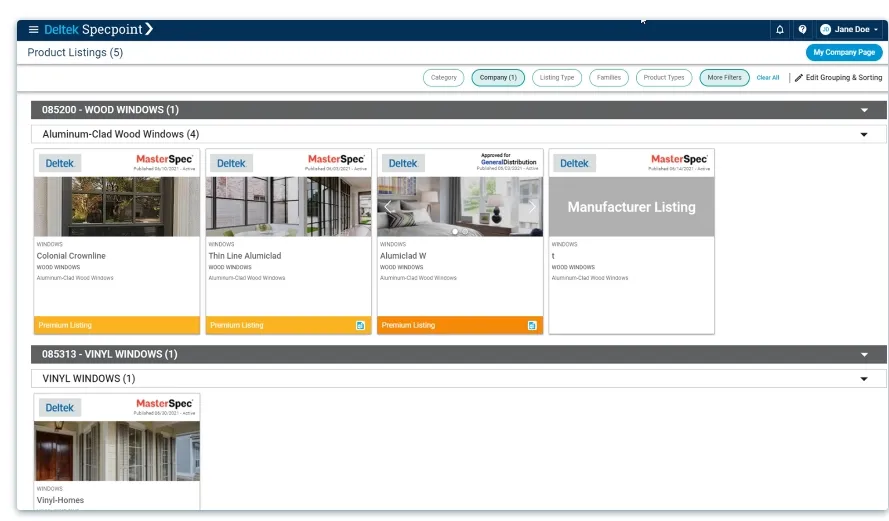 - Boost exposure with MasterSpec-level recognition for priority search rankings of your products