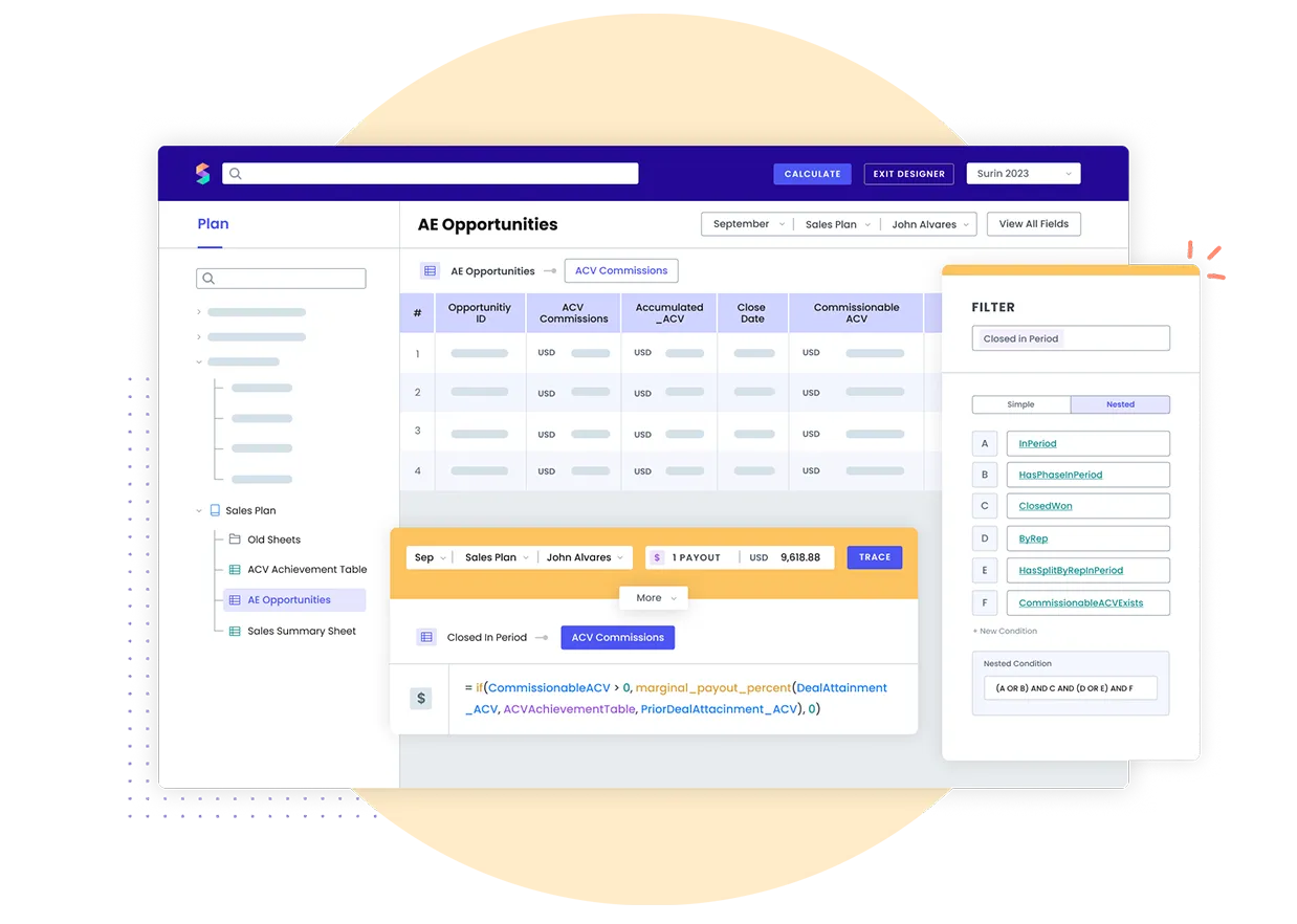 - Compensation Plan Design: Spiff Designer enables rapid creation of complex compensation plans.