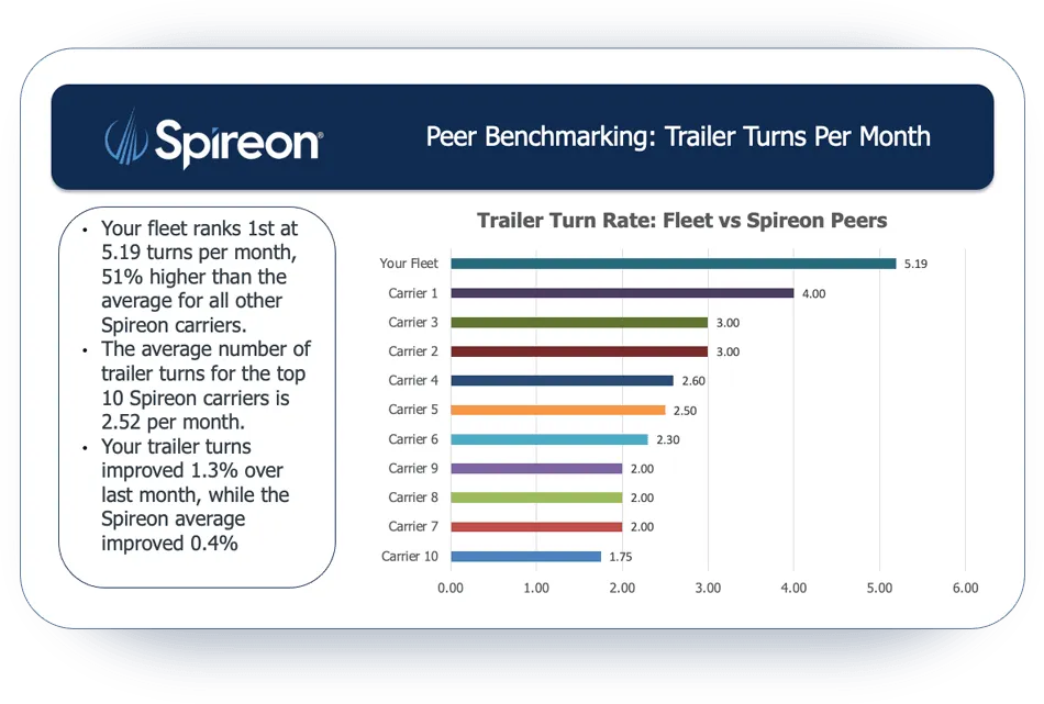 Aggregate data comparisons analysis Receive quarterly benchmark reports. Better understand your business’ weaknesses and improve operations by benchmarking yourself against successful industry fleets nationwide.