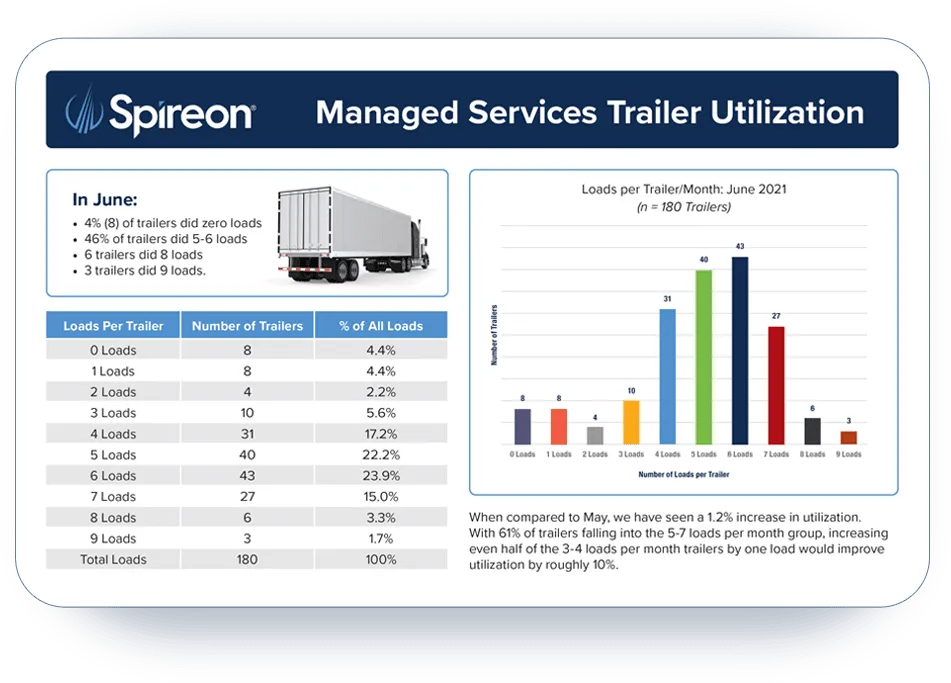 Dedicated Spireon Operations Analyst Reallocate your limited resources to more important duties while your dedicated Spireon operations analyst helps optimize various trailer management tasks including reporting and analytics.