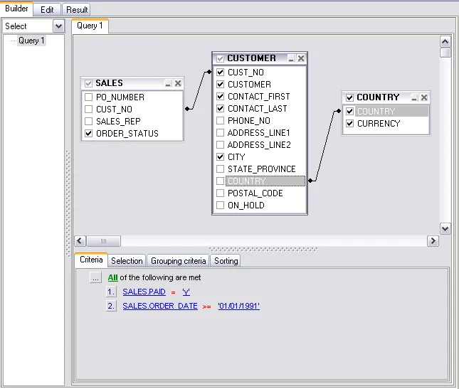 - Drag-and-drop interface for joins, conditions, and sub-queries