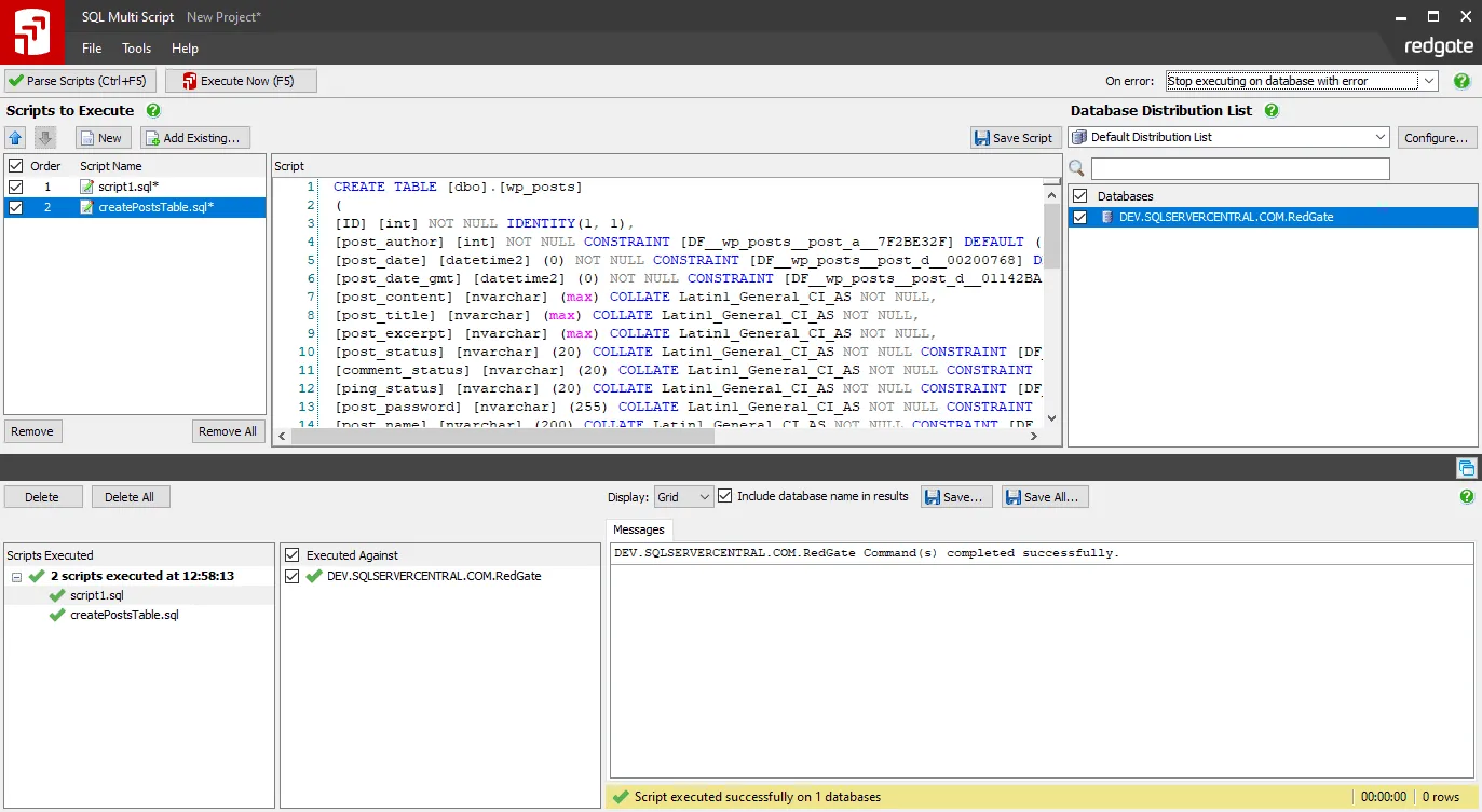 SQL Multi Script lets you execute multiple scripts against multiple SQL Servers quickly and easily