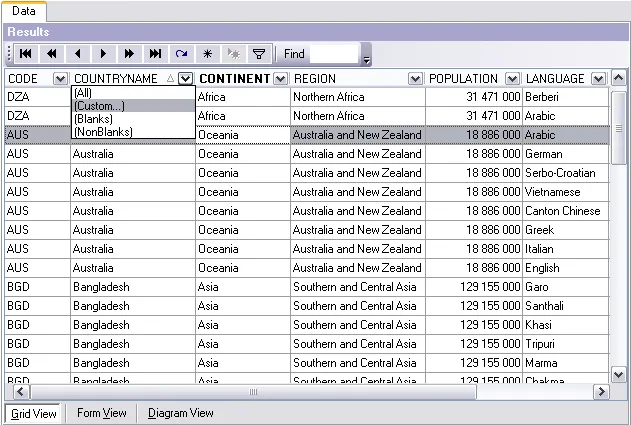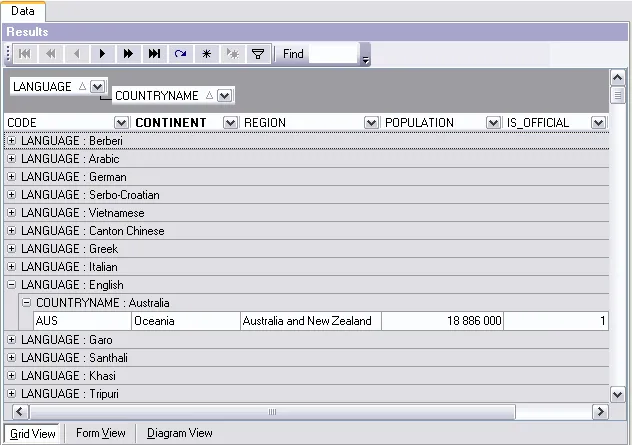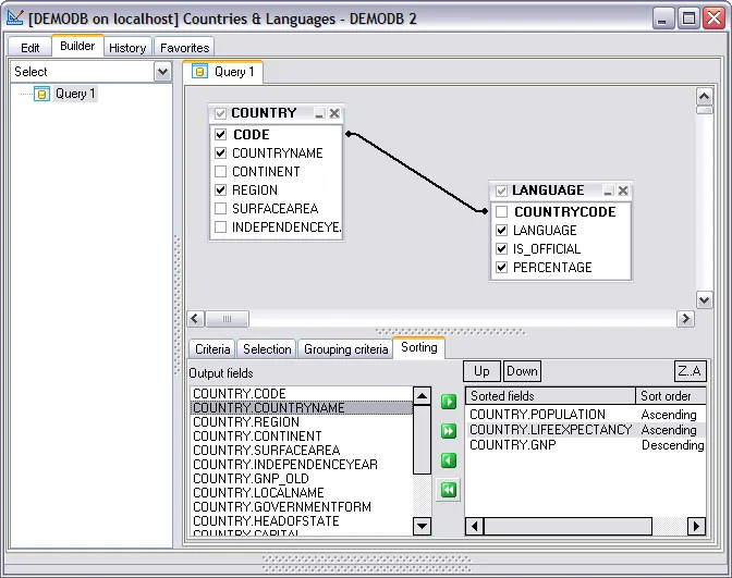 Visual query builder Constructs queries with unions and subqueries visually.