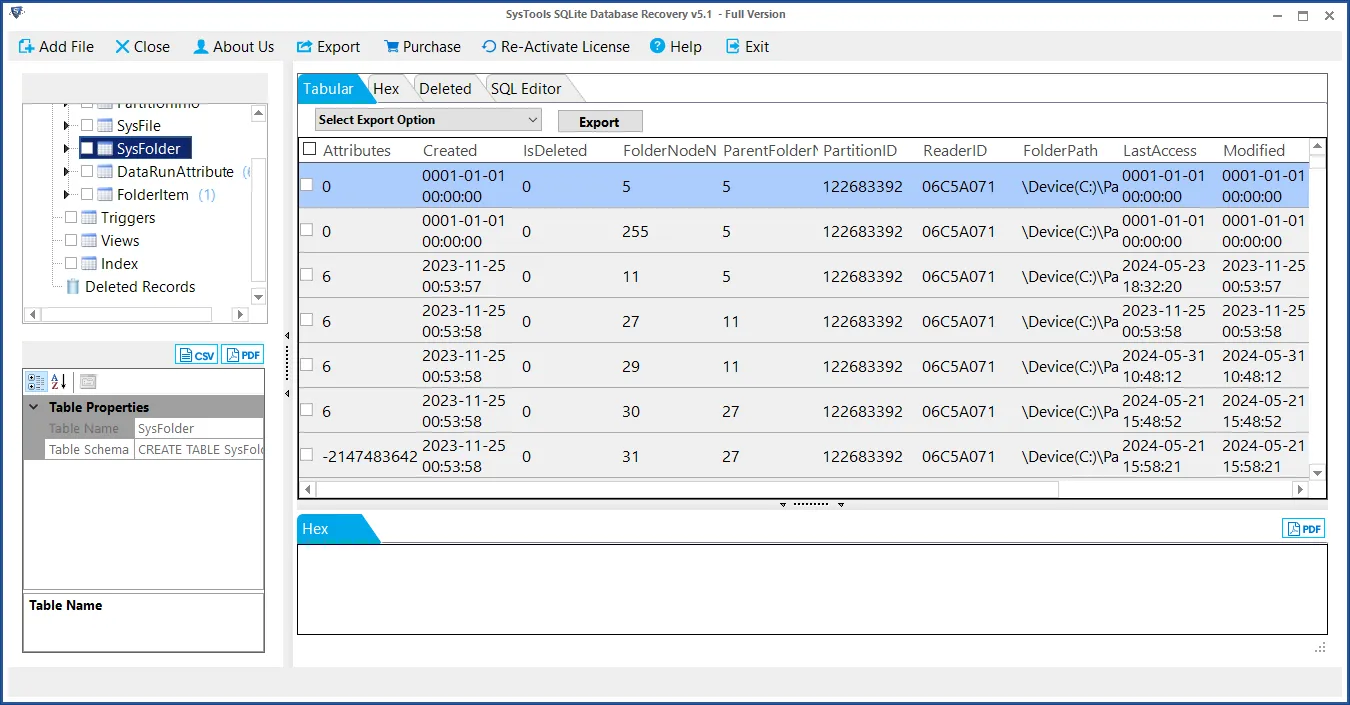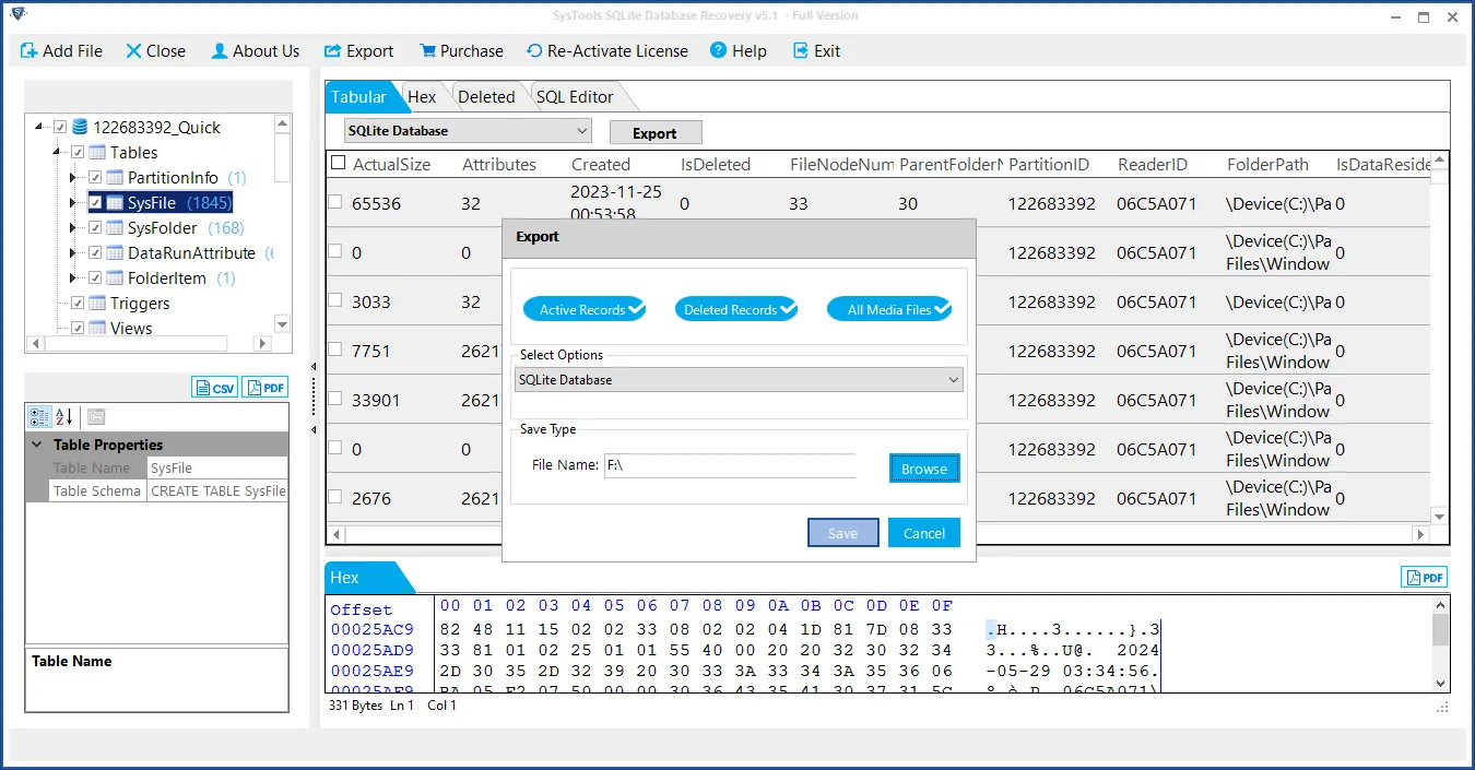 - Offers multiple database recovery options to export various properties of SQLite files.