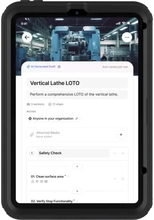 AI-powered platform that turns tribal knowledge into immersive, standardized procedures for frontline operators.
