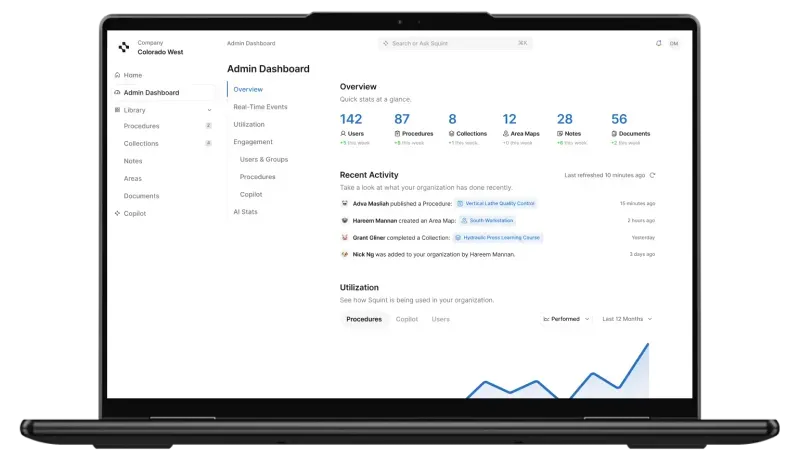 Squint is the leading Manufacturing Intelligence platform for capturing tribal knowledge, enforcing standard work, and analyzing rich insights.