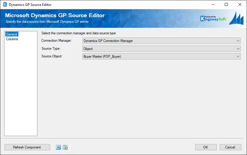 Dynamics GP Source Component Extracts data from Dynamics GP.