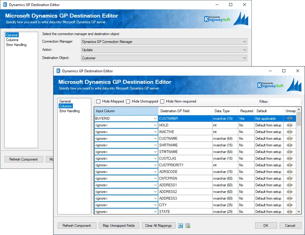 Dynamics GP Destination Component Loads data into Dynamics GP.