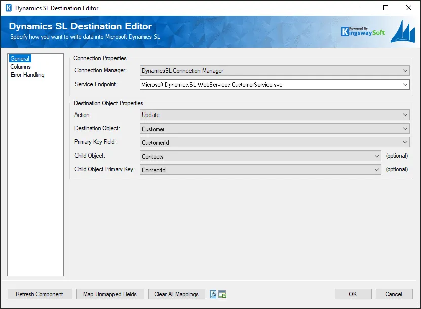 Dynamics SL Destination Component Writes and updates data in Dynamics SL.