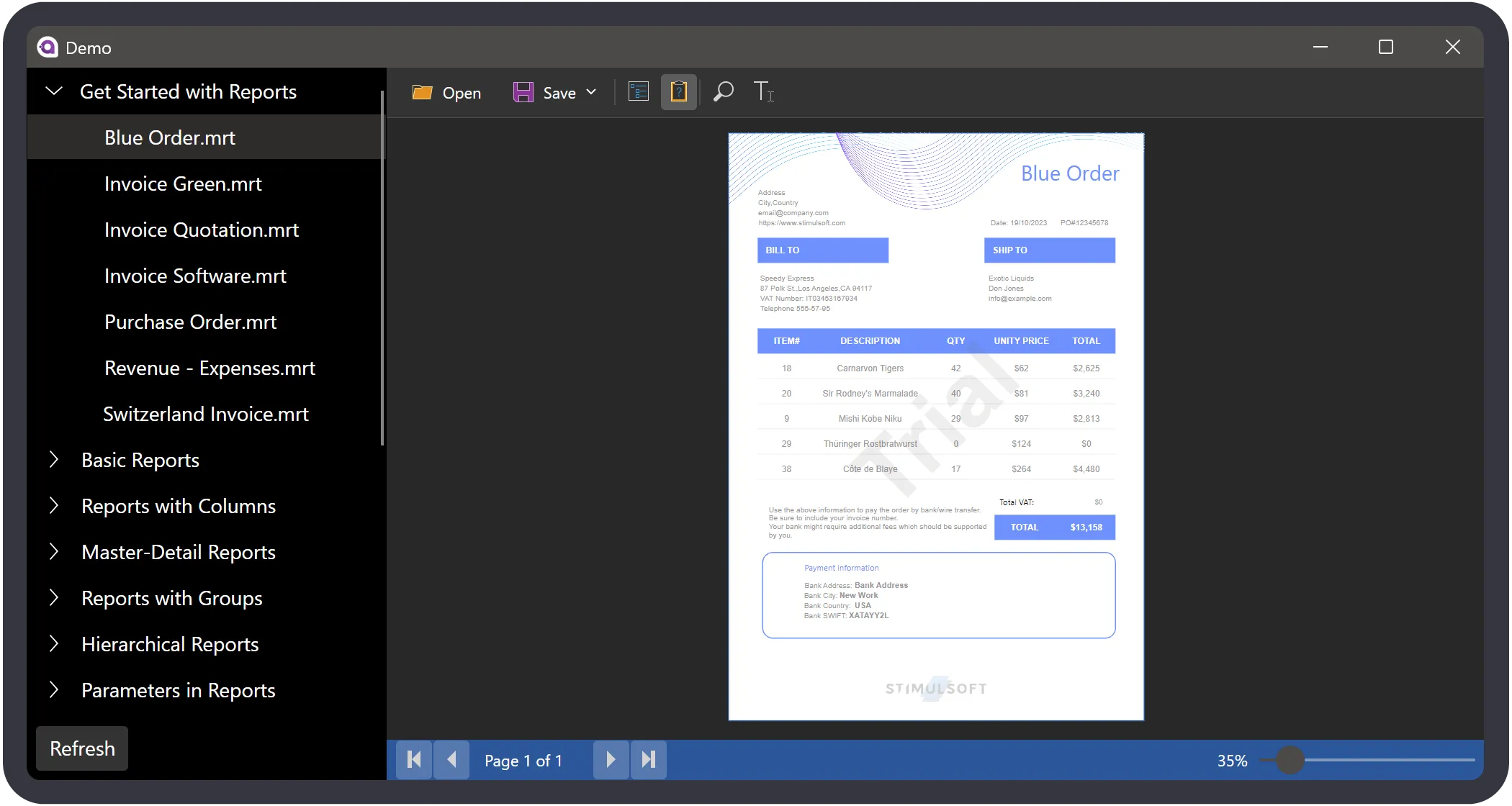 - Designed for easy integration into Avalonia UI projects, allowing export, printing, and viewing of reports within applications, with full C# code control and dedicated Visual Studio/JetBrains Rider extensions.